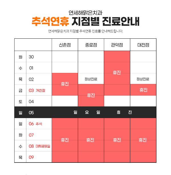 연세해맑은치과는 신촌, 종로, 관악, 대전, 건대점에서 실력과 노하우를 겸비한